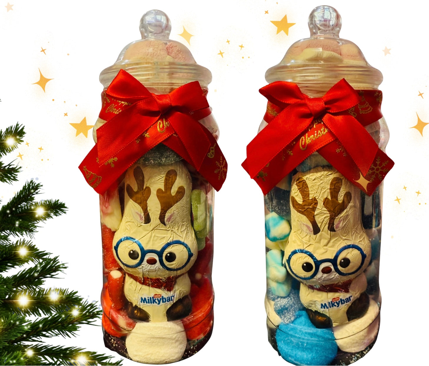 Christmas Sweet Mix Candy Gift Jars / Festive Pick N Mix With Milkybar Reindeer / Medium Jar